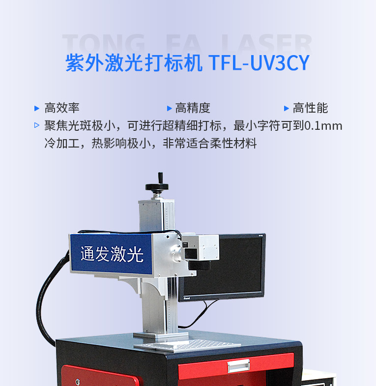 通發(fā)紫外激光打標(biāo)機(jī)聚焦光斑極小,可進(jìn)行超精細(xì)打標(biāo),最小字符可到0.1MM,冷加工,熱影響極小,不會(huì)有明顯燒痕,非常適合柔性材料、玻璃PCB標(biāo)識(shí)、特殊材料等高品質(zhì)打標(biāo)加工