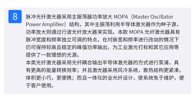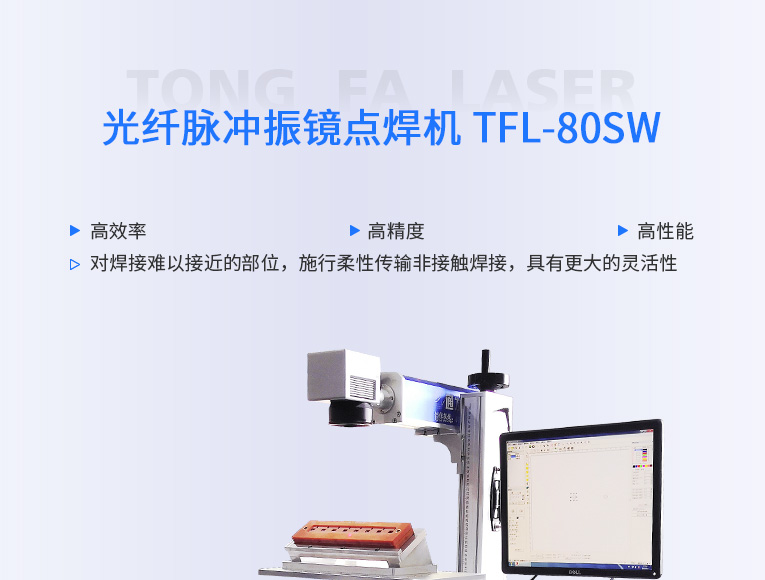 通發激光TFL-80SW振鏡激光焊接機,采用主振蕩器功率放大 MOPA(Masrer Qscillator Power Amplifier)結構,實現脈沖寬度和頻率獨立可調的特點,在對脈寬和頻率進行改動的情況下仍保持較高且穩定的峰值功率輸出,適用于電池、小五金等多個行業的激光打標、激光焊接應用。